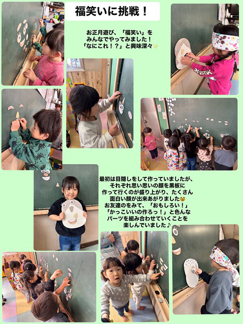 福笑い、凧揚げなど季節の遊びを楽しんでいます。