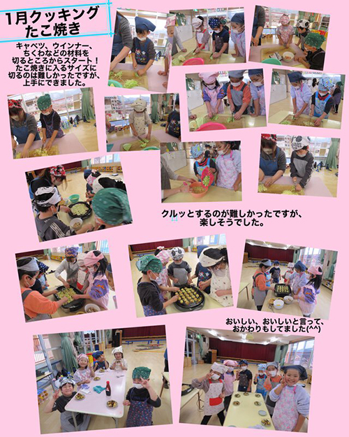 年長のさくら組ではクッキングでたこ焼きを作って食べました。