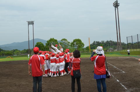 全国選抜リトルリーグ野球大会 中国連盟予選大会 優勝時監督胴上げ (名監督の4年連続の胴上げです。) |