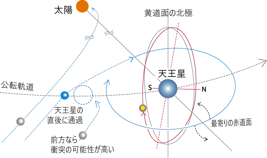 巨大隕石に衝突されて天王星が98度傾くためには、2回の接触が必要であろうといいます。